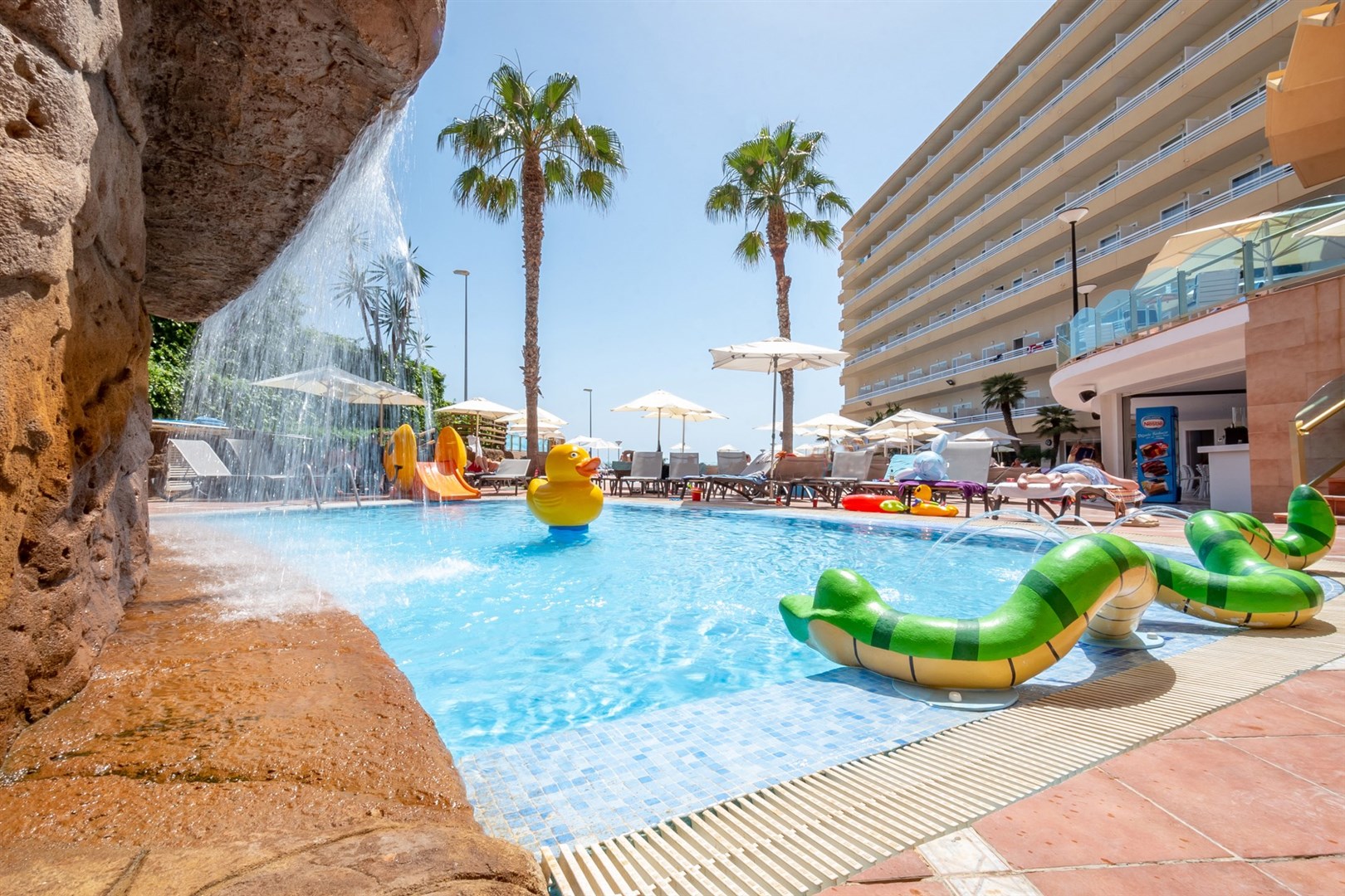 Ponúkame vám skvelý hotel Cala Font nachádzajúci sa priamo pri krásnej piesočnatej pláži v romantickej zátoke, v Salou. Letovisko Salou je na pobreží Costa Dorada vyhľadávaným nielen vďaka úžasným plážam, ale predovšetkým vďaka rušnému životu vo dne aj v noci. Pokiaľ máte radi adrenalínové atrakcie, rozhodne vám doporučujeme zažiť zrýchlenie z 0 na 180 km/h za 5 s. vo výške 112 m počas jazdy na 880 m dlhej dráhe Ferrari Red Force. Neuveriteľný zážitok! A to nie je všetko. V parkoch Port Aventura a Ferrari Land vás čakajú desiatky ďalších atrakcií. Pre milovníkov pamiatok navrhujeme výlet do Tarragony a Barcelony.čakajú desiatky ďalších atrakcií. Pre milovníkov pamiatok navrhujeme výlet do Tarragony a Barcelony.