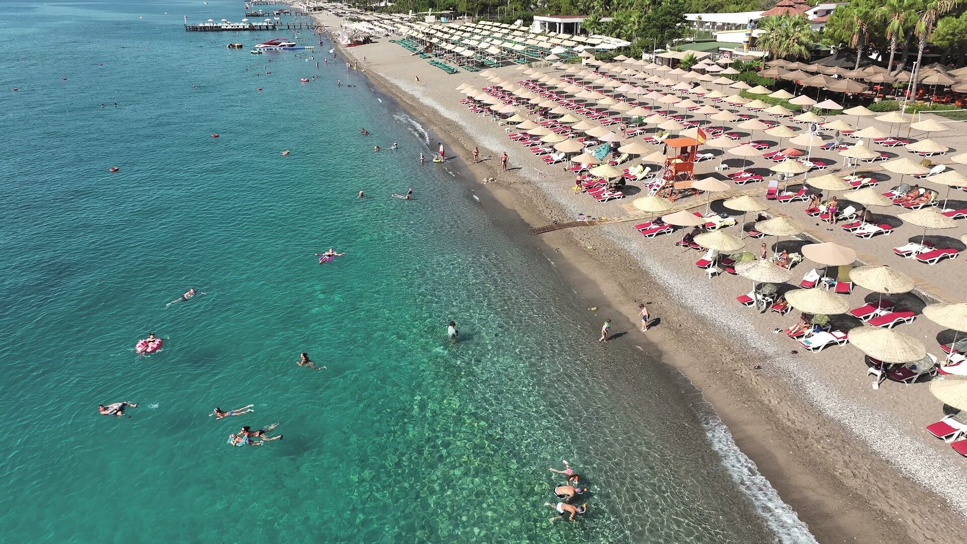 priamo pri piesočnatej pláži premiešanej kamienkami a pri vstupe do mora s okruhliakmi • v stredisku Göynük • cca 400 m od nákupných možností • 8 km od mesta Kemer • cca 50 km od medzinárodného letiska v Antalyi