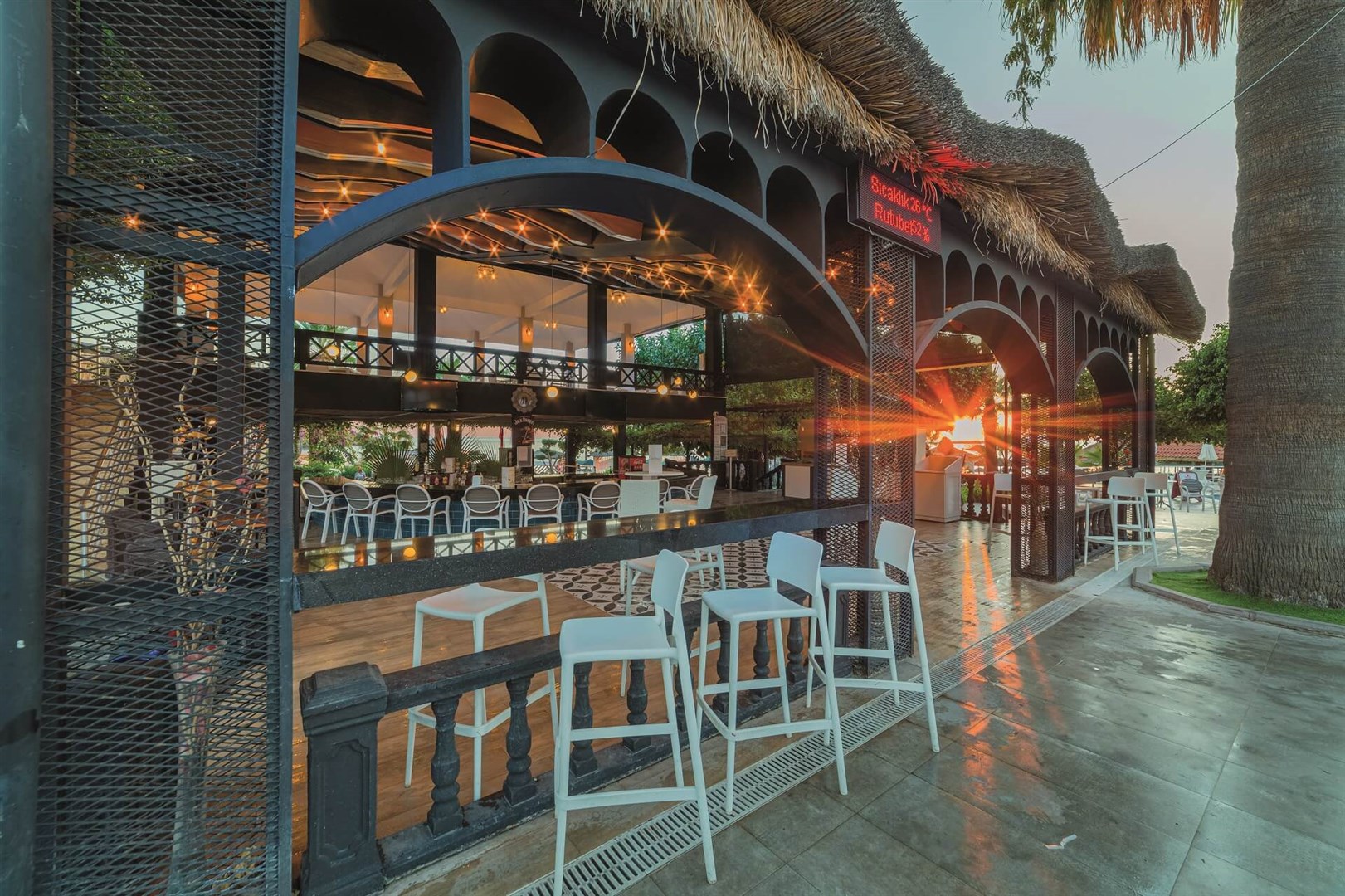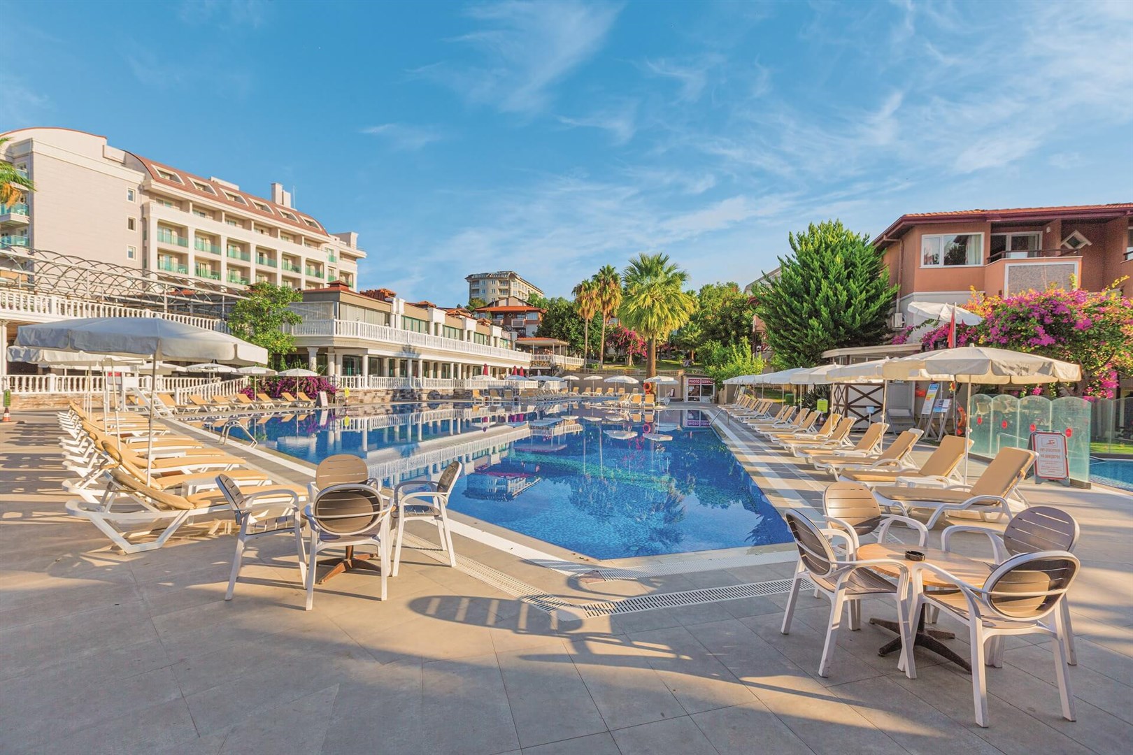 vstupná hala s recepciou a posedením • hlavná hotelová reštaurácia s terasou • a´la carte reštaurácia (turecká, nutná rezervácia vopred) • lobby bar • pool bar • beach bar • snack bar • disco bar • vitamin bar (za poplatok) • hlavný vonkajší bazén • vonkajší bazén so šmykľavkami • relaxačný bazén • detský bazén so šmykľavkami • wellness centrum (masáže, turecké kúpele a peeling za poplatok) • sauna (zdarma) • fitness centrum • aerobik • šípky • boccia • vodné pólo • basketbal • plážový volejbal • miniklub • detské ihrisko • kaderníctvo • minimarket • amfiteáter • vodné športy na pláži (za poplatok) • hotelové animácie • wifi v lobby (zdarma)