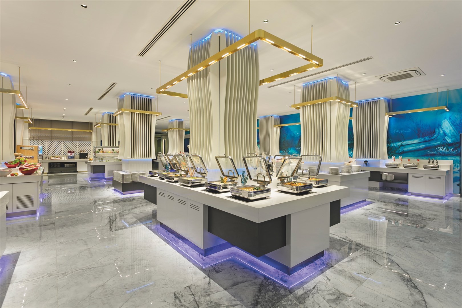 vstupná hala s recepciou • hlavná reštaurácia • 2 snack reštaurácie • 6 a´la carte reštaurácií • lobby bar • pool bar • beach bar • snack bar • ďalšie 2 bary • 5 vonkajších bazénov (rozsiahly bazén, bazén s jacuzzi, detský bazén, vnútorný bazén) • 4 šmykľavky • aquapark pre dospelých so 6 šmykľavkami • SPA a wellness centrum • fitness centrum • športoviská • amfiteáter • vodné športy na pláži • miniklub • detské ihrisko • hotelové animácie a živá hudba • wifi