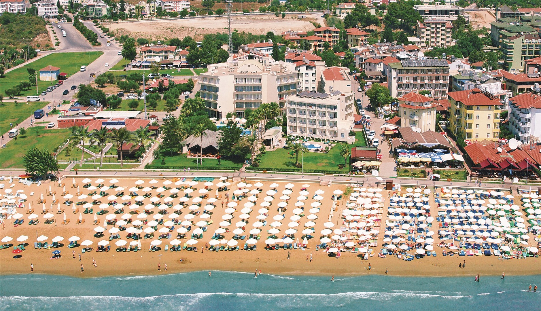 útulný hotel s vynikajúcou polohou priamo pri piesočnatej pláži s pozvoľným vstupom do mora • 27 km od Manavgatu • iba 15 minút chôdze od centra Side • cca 65 km od medzinárodného letiska v Antalyi