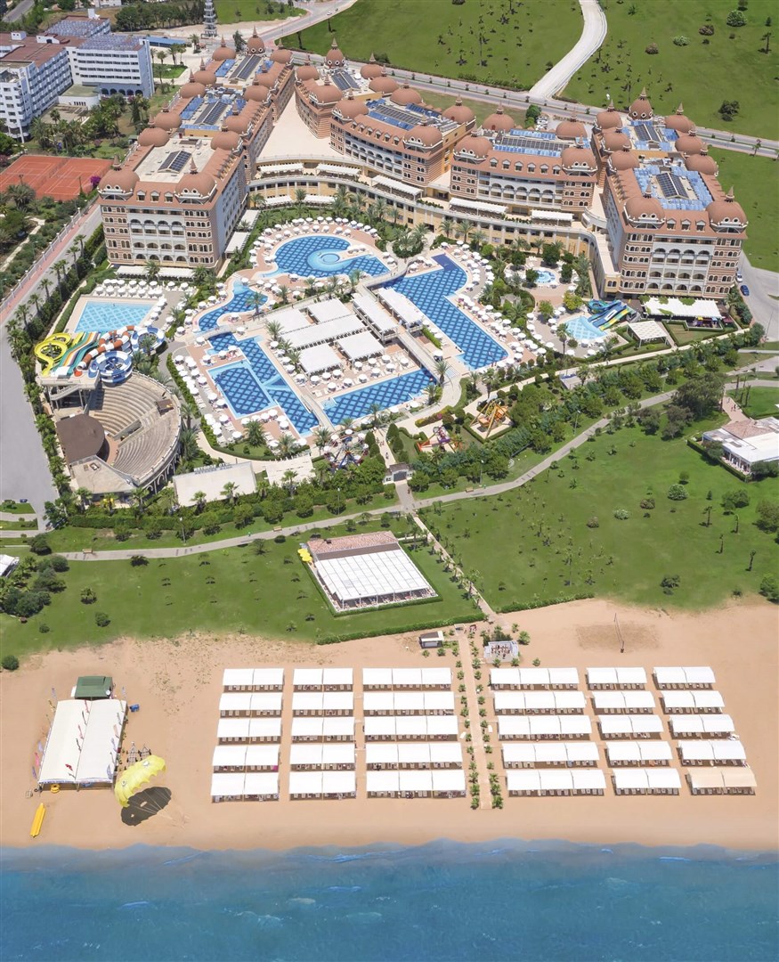 vstupná hala s recepciou • hlavná reštaurácia • 5 a´la carte reštaurácií (rezervácia nutná) • Piano lobby bar • pool bar • beach bar • snack bar • Amphi bar • Energy disco bar • hlavný vonkajší bazén • vnútorný bazén • detský bazén • aquapark (5 šmykľaviek pre dospelých a 3 pre deti) • zábavný park/lunapark • SPA a wellness centrum • fitness centrum • športoviská • miniklub • medzinárodné animácie a večerný program • wifi